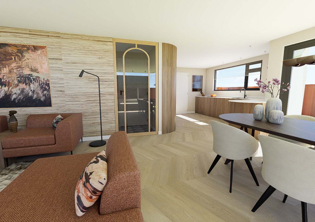 Deze woonstyle brengt het warme karakter en de gedurfde vormen van de typerende jaren '60 en '70 samen met de verfijning van het moderne interieur. Het resultaat is een comfortabele, stijlvolle en tijdloze sfeer waarin nostalgie en modern design elkaar ontmoeten.