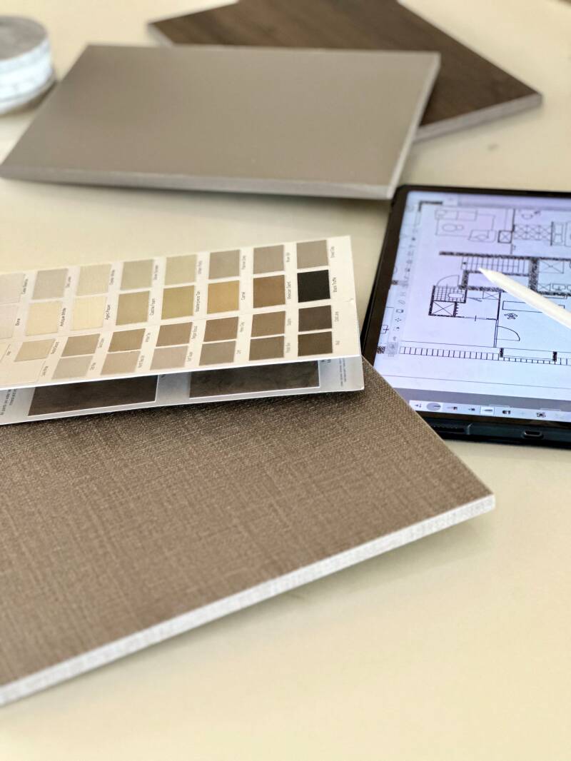 Daarna creëer ik een moodboard en werk ik 2-3 indelingsvoorstellen uit. Deze bespreken we samen, zodat we de ideale indeling kunnen kiezen. Vervolgens stel ik een kleurenplan en meubeladvies samen, dat ik verwerk in een 2D plattegrond en sfeerimpressie.
